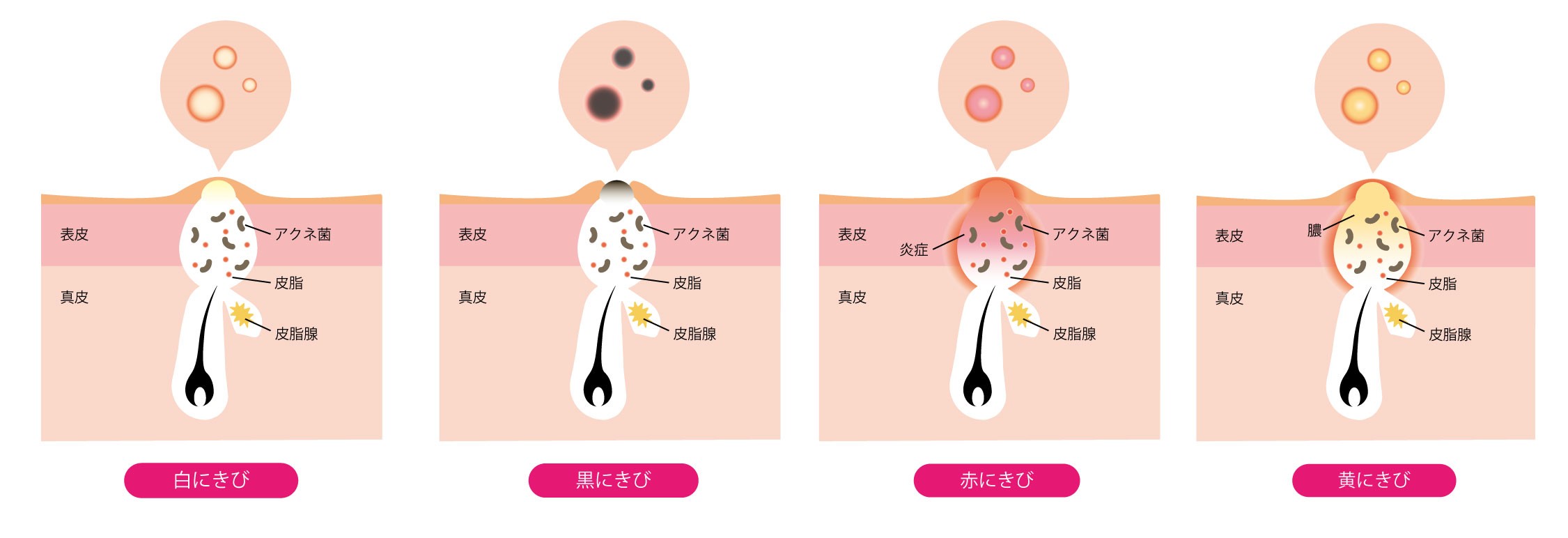 毛穴に皮脂が詰まった状態の白ニキビから、